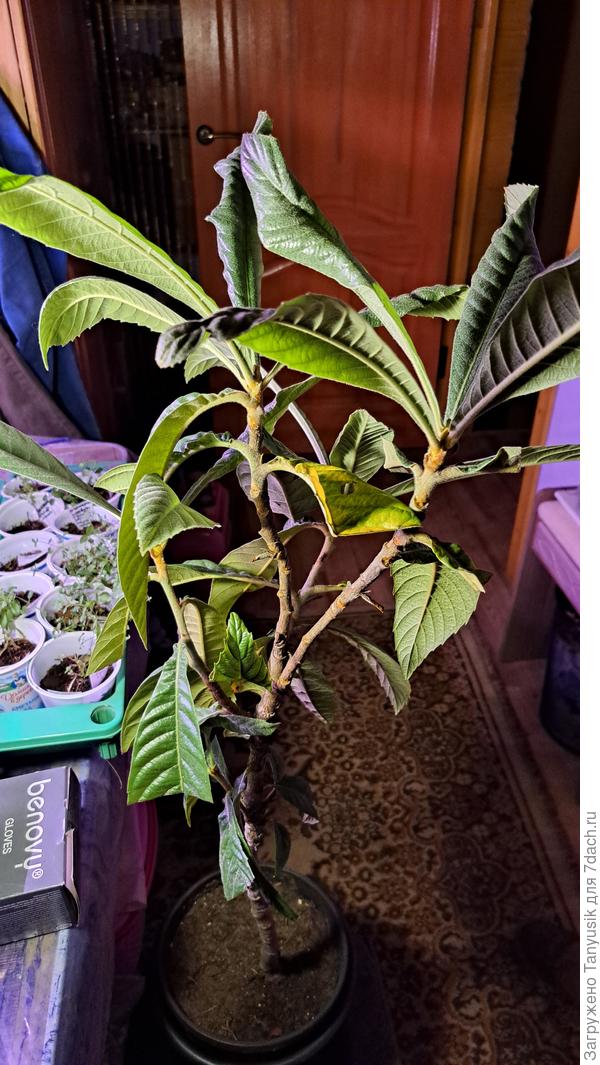 Занесла в дом после первых заморозков. Мушмула обрадовалась и вырустила новые зеленые листья