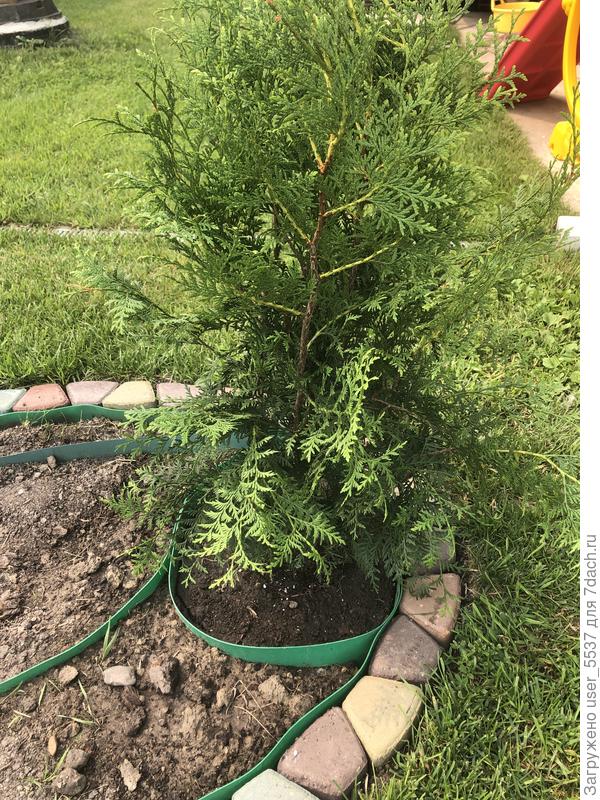 У меня проблема с туями. Подскажите, что у них за болезнь. Посажены 09.04.2021. Или это адаптация к новому месту?