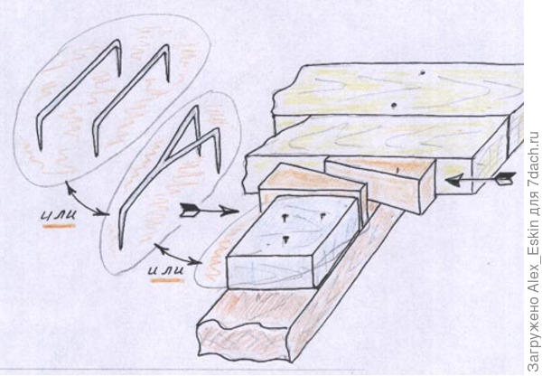 Правда вместо архаичных скоб сейчас, в эпоху шуруповертов и саморезов. практичней прикручивать просто доску.