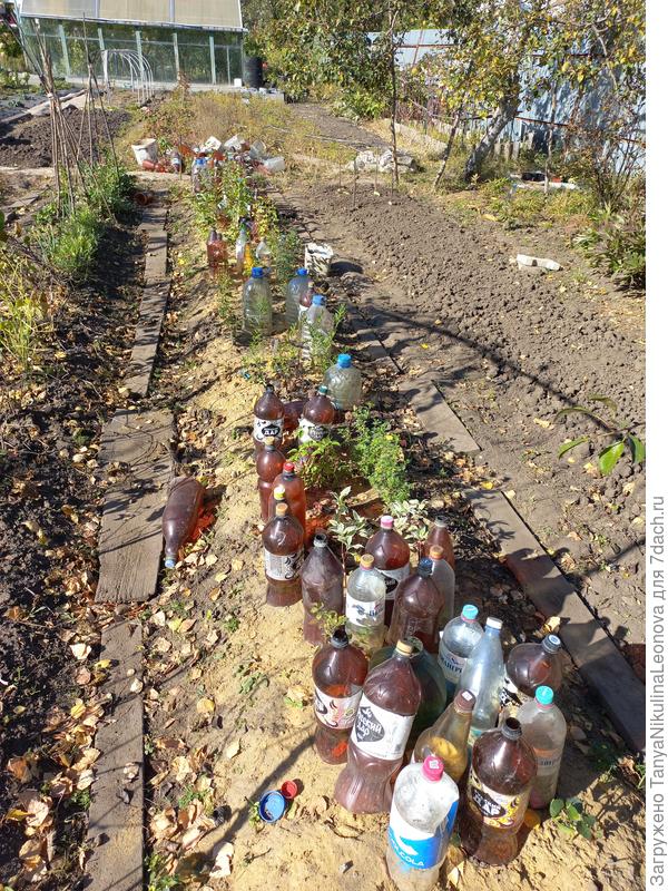 У нас череночника нет. В стакане вкопаю в один из розариев, сверху бутылку поставлю. А на зиму ставим тоннель — общее укрытие на розарий.