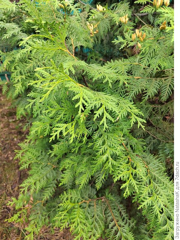 Нижние ветки по расположению хвои заметно отличаются от традиционных туй, м. б. это такая ювенильная хвоя.
