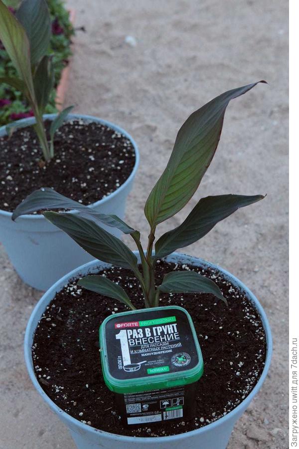 Также считаю большой ошибкой своё решение выращивать как однолетник и не попытаться научиться сохранять клубни зимой и будить их весной, даже профсемена могут подводить. В этом году у меня всего два саженца, и каждому досталось кашпо на 20 л. Грунт я заменила с универсального торфа на «Волшебную грядку» от «Буйских удобрений», добавив «Наноудобрение для рассады и комнатных растений» с цеолитом от «Bona Forte» — теперь мне нужно много клубней канн именно этого полюбившегося сорта.