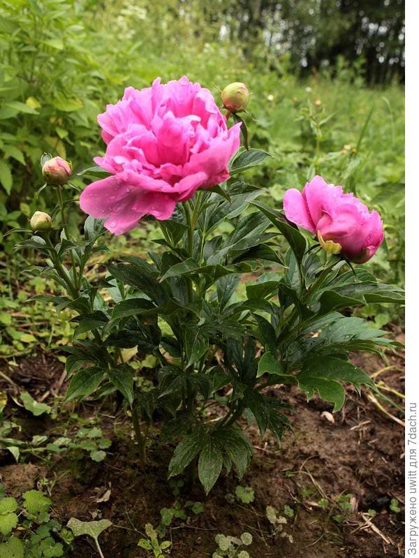В прошлом году я собрала почти все сорта пионов в пионарии — довольно большой участок земли в 1,5-2 сотки земли. 'Принцесса Маргарет' также была перенесена с огромным комом земли на новое место, дабы не жертвовать первым цветением в этом году.
