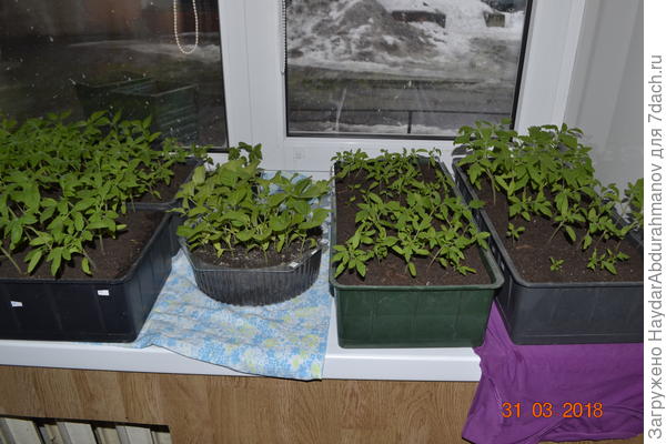 Я начинающий огородник. Первый раз посадила семена томатов на рассаду. Это было 13 дней назад. Взошли с разницей в 7-10 дней. Одни уже имеют по паре настоящих листиков, другие — только проклюнулись.