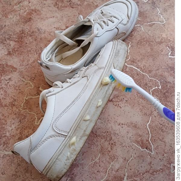 Надо натереть подошву зубной пастой при помощи щётки и немного потереть. Зубная паста должна быть без добавок.