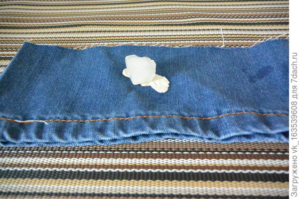 Я вспомнила про этот лайфхак и решила его испытать. У меня в холодильнике всегда на всякий случай лежат кубики льда. Совет я просто продемонстрировала на кусочке старой ткани.