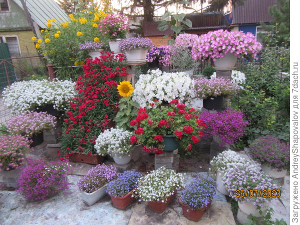 Июль — середина лета, пик солнечных жарких дней, пора пышного цветения однолетних растений: яркими красками радуют бархатцы, вербены, душистый горошек, настурция, душистый табак, портулак, ипомеи. Великолепны шары цветочных соцветий гортензии...