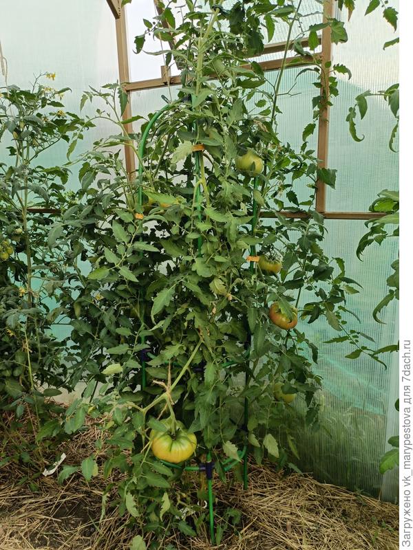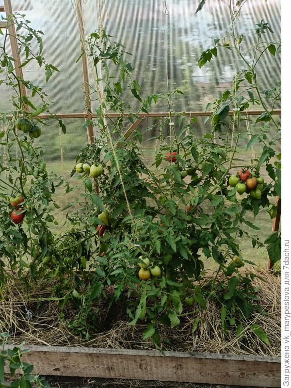 Сорта разные: индеты, высокорослые и немного детов. Не пасынковала, по опыту знала:- Места много, значит, все, что вырастет — поместится.