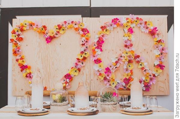 Затем вам нужно подумать о цветах. Бумажные может испортить дождь еще до вечеринки или же сдуть ветер. Живые могут начать увядать, если вы срежете их слишком рано. Продумайте ритм, с которым будете украшать стол, накладывать еду и делать это панно, чтобы все было вовремя и вы смогли потом в полной мере насладиться праздником.