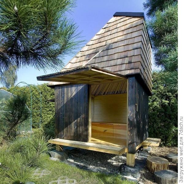 В общем, идей для использования этого дома множество. И самая доступная для нас — эксплуатирование его в качестве закрытой беседки с новомодным дизайном. Не хватает лишь счастливых людей, дышащих ароматом сосновых досок, использованных при строительстве.