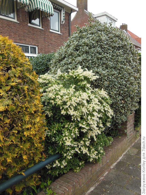 Яркий кустарник желтого цвета в центре или в углу площадки