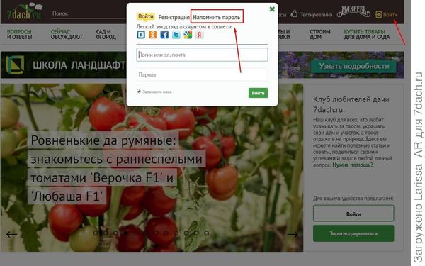 Для этого необходимо сначала нажать «Войти», потом выбрать вкладку «Напомнить пароль»