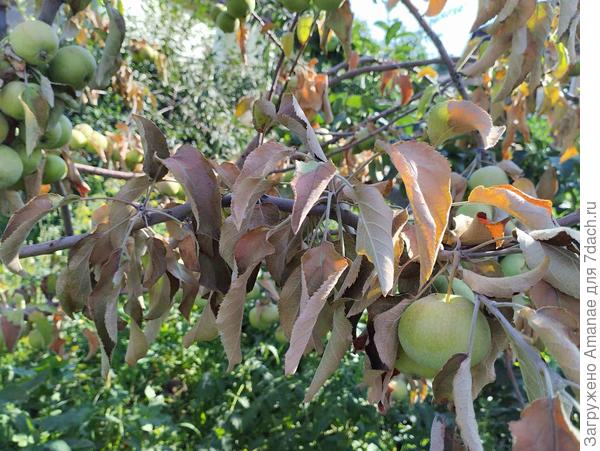 Это может быть бактериальный ожог? Равномерно поражено как будто сразу все дерево, я думал, что ожог сначала рубит частями.