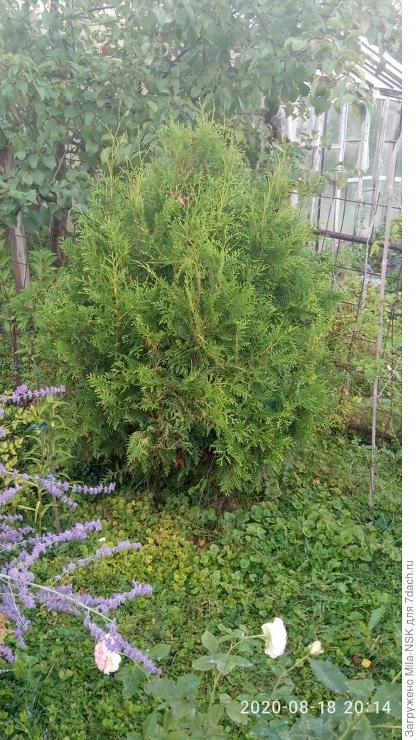 Согласна: хвойные выглядят очень благородно вдоль участков, я бы даже сказала — шикарно! Как на фотке моих друзей — за 9 лет- такие исполины из туи выросли! Я увидела и просто пришла в полный восторг!