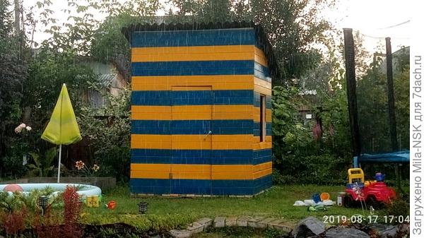 Любого гостя без стеснения можно будет подвести к этой стороне сарайчика практически как к кремлёвской стене! И на её фоне будут расти ваши великолепные туи! Желаю творческих успехов!