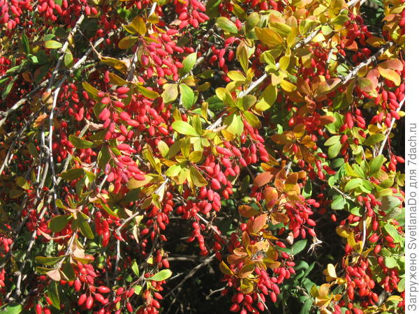 Высаживая со стороны улицы кустик барбариса в качестве защиты цветника от настойчивых гостей моей ши тцу, не думала, что получу великолепное украшение и баночку витаминов.