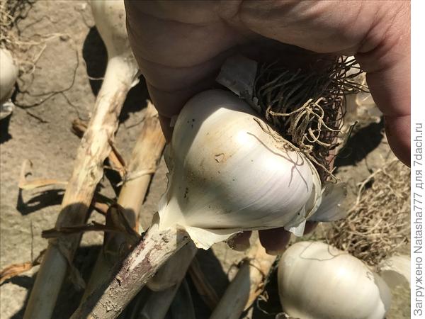 Вроде чешуя, которая держит чеснок "в кулаке", про которую писал ФХ, стала совсем тонкой и отходит.