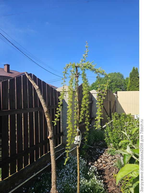 Добрый день. На фото лиственница плакучая. Сначала подумала, что из зимы не вышла. А потом смотрю — на концах веток зелёные иголки появляются. Только быстро рыжеют и опадают. Подскажите, что с лиственницей и как помочь?